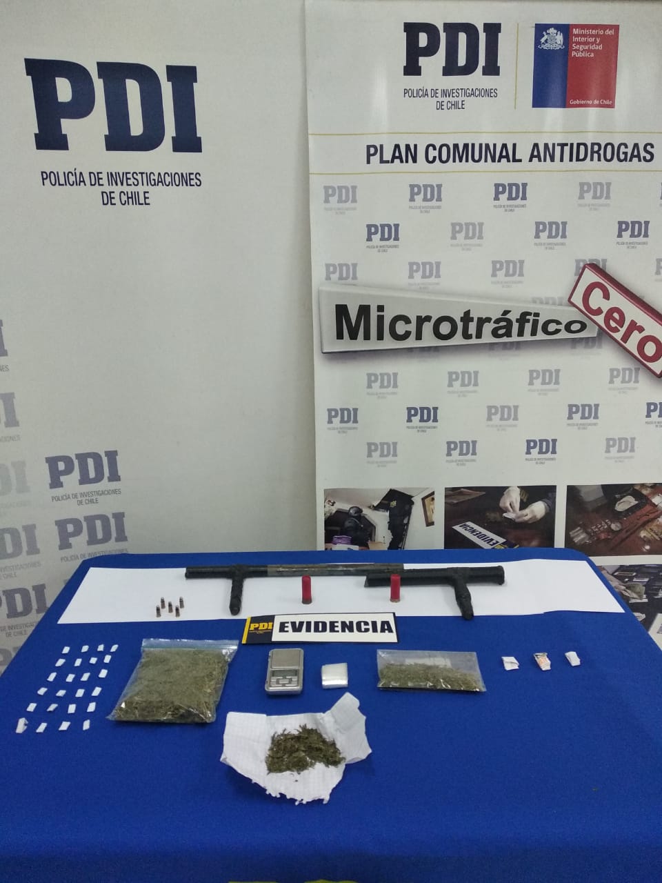 Fue así que el fiscal de turno, en virtud a la evidencia obtenida por los detectives gestionó ante el Juzgado de Garantía de Rengo, entradas y registro a dos domicilios del sector antes mencionado, lugar donde los investigadores especializados en microtráfico cero, incautaron 70,97 gramos de cannabis procesada; 01 escopeta hechiza, 02 cartuchos de escopeta calibre 12 sin percutar, 05 cartuchos calibre 765 sin percutar, 01 pesa digital y bolsas de nylon transparente, siendo detenidas cuatro personas (dos mujeres), por el delito de infracción a la ley de drogas.